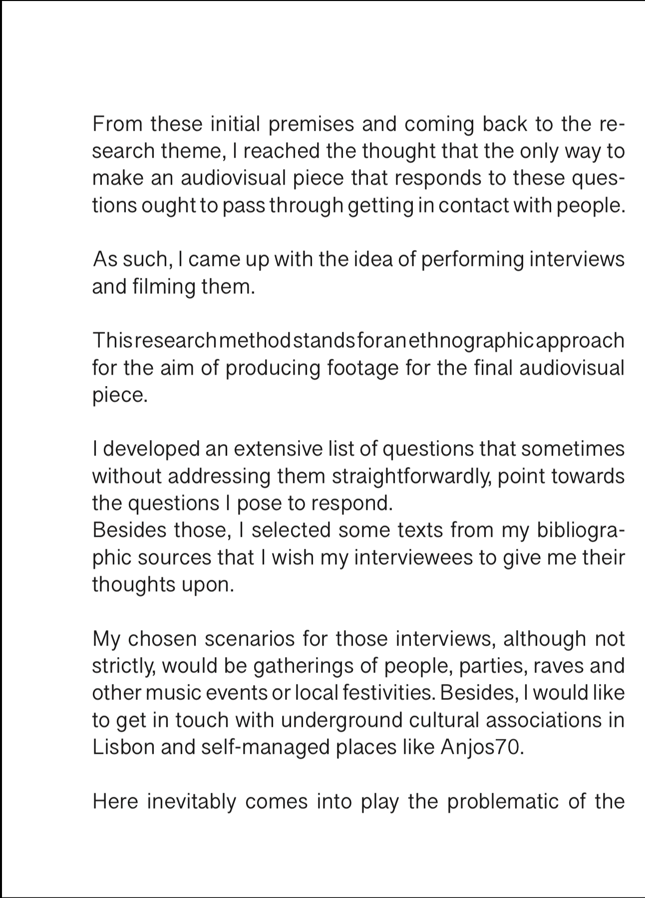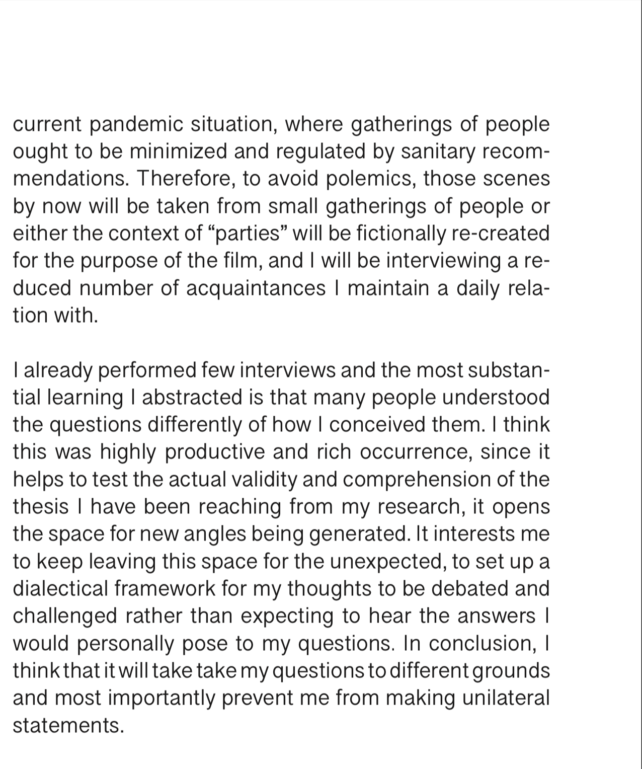 stills from the interviews filmed so far
