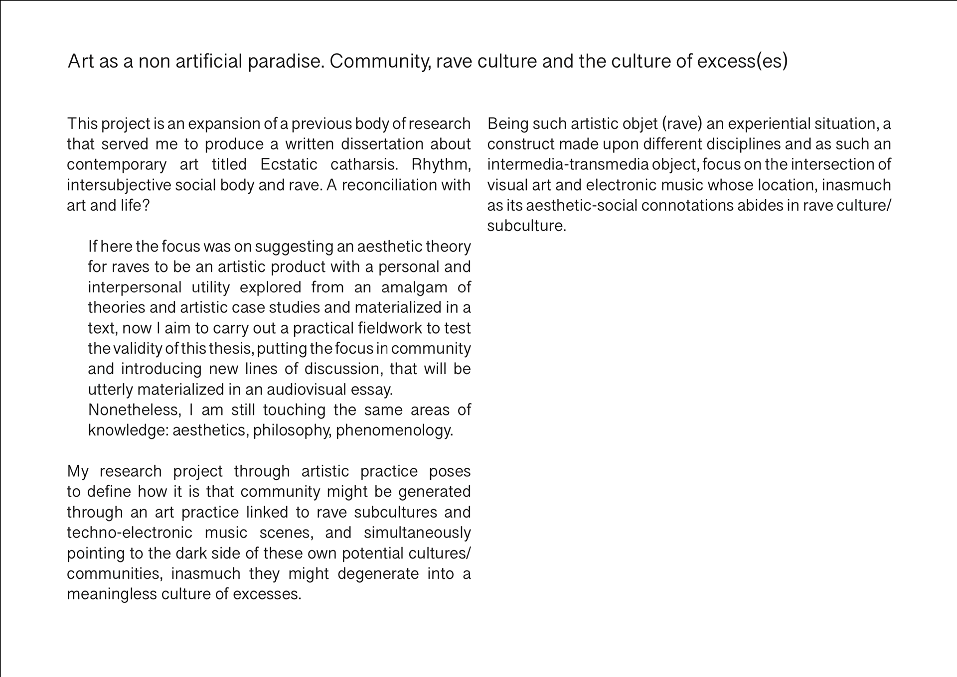 community, rave culture and the culture of excess(es)